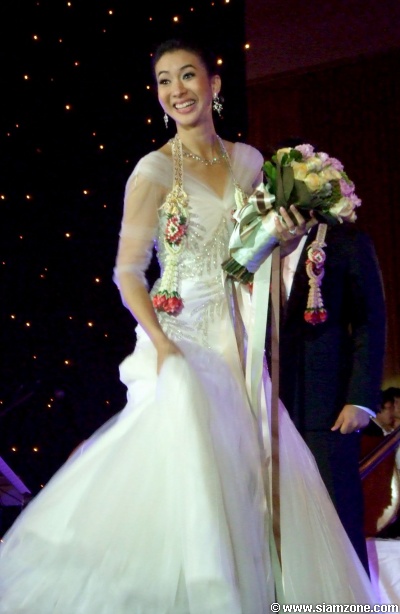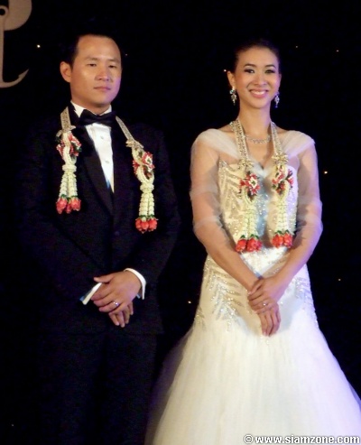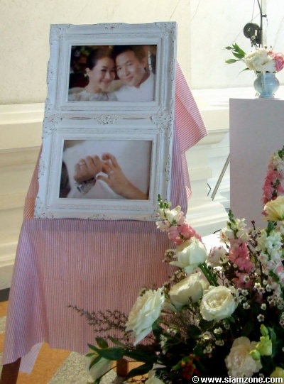 สำหรับบรรยากาศการจัดงานเน้นแบบเรียบง่ายตกแต่งด้วยดอกไม้โทนสีหวานๆ พร้อมทั้งประดับด้วยภาพถ่ายของคู่บ่าวสาว ส่วนของชำร่วยที่ใช้มอบแทนคำขอบคุณก็เป็นเหรียญกษาปณ์ที่ระลึกโลหะเงินบรรจุภายในกล่องสีเขียว โดยเวลาประมาณ 17.45 น. คู่บ่าว-สาวก็ได้ปรากฏตัวเพื่อให้สัมภาษณ์ถึงช่วงเวลาแห่งความสุขของคนทั้งคู่