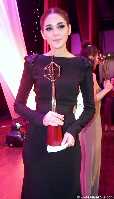 ด้านสาว " มพู่ - อารยา เอ ฮาร์เก็ " ที่ถูกโฉลกกับบทบาท เรยา จากละครเรื่อง ดอกส้มสีทอง จนคว้ารางวัลจากเวทีนี้ไปได้อีก 1 รางวัลก็กล่าวขอบคุณว่า " อบคุณคณะกรรมการทุกๆ ท่านนะคะที่ให้โอกาสพิจารณาบทของเรยานะคะ ขอบคุณบรอดคาซท์ (บรอดคาซท์ไทย เทเลวิชั่น) ที่หยิบยื่นบทดีๆ แบบนี้มาให้ชมนะคะ พี่หน่อง (อรุโณชา ภาณุพันธ์ุ) ขอบคุณมากๆ ขอบคุณทีมนักแสดงทุกคนเลยค่ะ ที่เราเป็นทีมเวิร์กที่ดีมากนะคะ ขอบคุณป้าแดง ศัลยา (ศัลยา สุขะนิวัตติ์) นะคะสำหรับคำแนะนำดีๆ แล้วก็บทละครทุกๆ คำพูดของอาจารย์ ที่สำคัญเลยขอบคุณอาจารย์ถ่ายเถา สุจริตกุล นะคะ สำหรับบทประพันธ์ที่เยี่ยมยอด แล้วก็ทึ่งในความกล้าของอาจารย์นะคะ ที่นำแง่มุมนี้ในสังคมออกมาตีแผ่ผ่านนวนิยายของอาจารย์นะคะ ที่สำคัญที่สุดเลยนะคะขอบคุณช่อง 3 สำหรับโอกาสที่มอบให้กับผู้หญิงคนนี้นะคะ ขอบคุณนายมากๆ ค่ะ ขอบคุณค่ "