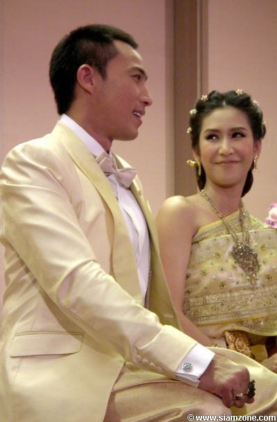 ตั๊ก "คือต้องแบ่งกันครับ ต้องแบ่งรับแบ่งสู้กันนี่คือชีวิตคู่ที่ผมเรียนรู้กันนะครับ เวลาอยู่ด้วยกันไม่ใช่ว่าเอาเลยผมไม่ยุ่ง ไม่ใช่ว่าผู้หญิงจะเป็นใหญ่ซะทีเดียว แต่จริงๆ ก็เป็น (ยิ้ม) แต่ว่าเราก็จะส่วนแบ่งเบาภาระเขา อย่างงานวันนี้ก็เป็นเครื่องเตือนใจผม เป็นตัวสอนผมอีกอันนึงว่าที่เราเป็นผู้ใหญ่ขึ้น มีคู่ครอง มีครอบครัว เราต้องทำอะไรเพื่อครอบครัวบ้าง เพื่อให้เราได้สิ่งที่เราคิดว่าเหมาะสมและดีที่สุดกับคนที่จะเป็นคู่ครอง เป็นครอบครัวของเราครับ"