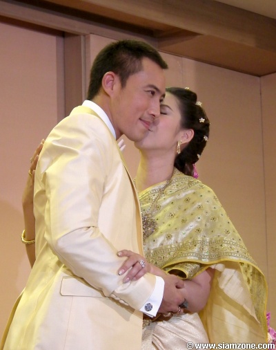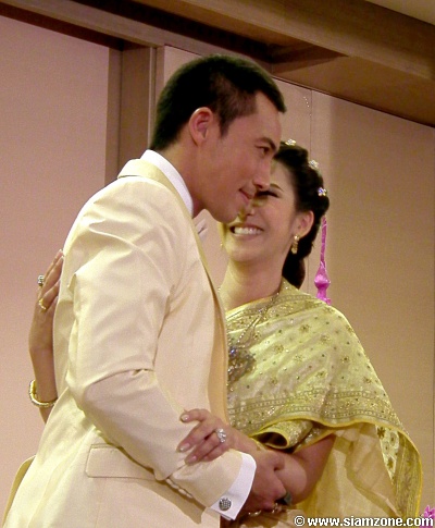 จากนั้น "ท่านมุ้ย - ม.จ. ชาตรีเฉลิม ยุคล" ประธานในพิธีจะขึ้นมากล่าวนำถวายพระพรพระบาทสมเด็จพระเจ้าอยู่หัว และอวยพรให้กับคู่บ่าวสาว ต่อด้วยคุณพ่อคุณแม่ของทั้ง 2 ฝ่ายและตัวบ่าวสาวเองกล่าวขอบคุณแขกที่มาร่วมงาน นอกจากนั้น ตั๊ก ก็ขอให้คำมั่นสัญญาความรักที่มีต่อ ป๊อก แบบหวานๆ ด้วยเพลง "รับรองว่าเป็นความจริง" ที่แต่งขึ้นเป็นพิเศษเพื่อเจ้าสาว ก่อนจะเสร็จสิ้นในช่วงพิธีการด้วยการตีกลองแสดงความเป็นไทยแทนการตัดเค้ก