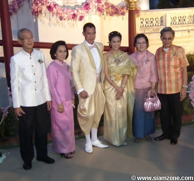 จากนั้นทั้งคู่ก็เตรียมตัวไปต้อนรับแขกญาติผู้ใหญ่ เพื่อนๆ ที่สนิท รวมไปถึงเหล่าคนบันเทิงที่มาร่วมแสดงความยินดี ที่แต่ละคนก็พร้อมใจใส่ชุดไทยมาร่วมงานกันอย่างพร้อมเพรียง ไม่ว่าจะเป็น "ประวิทย์ มาลีนนท์" "ต้อย - เศรษฐา ศิระฉายา" "สุเชาว์ พงษ์วิไล" "แหม่ม - จินตหรา สุขพัฒน์" "ศานติ สันติเวชชกุล" "คุณชายอดัม - ม.ร.ว.เฉลิมชาตรี ยุคล" "จิม - โสภณ ศักดาพิศิษฏ์" "จอย - ศิริลักษณ์ ผ่องโชค" "ภูมิ - ณัฏฐ์ เทพหัสดิน ณ อยุธยา" "แอปเปิ้ล - อิษฏ์อาณิก อินทรสูต" "หมูตั้ง - ม.ล.อรรถดิศ ดิศกุล" "ตรี - นันทรัตน์ ชาวราษฎร์" "เสนาลิง - สมเกียรติ จันทร์พราหมณ์" "ผู้พันเบิร์ด - พ.ท. วันชนะ สวัสดี" และภรรยา "ปาล์ม - วริญญา ศิริชุมแสง"