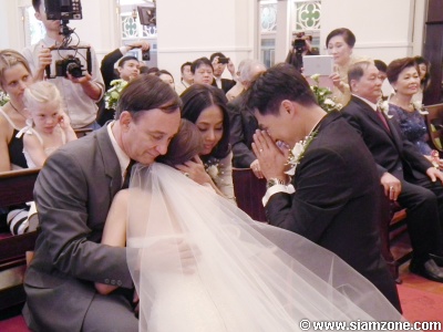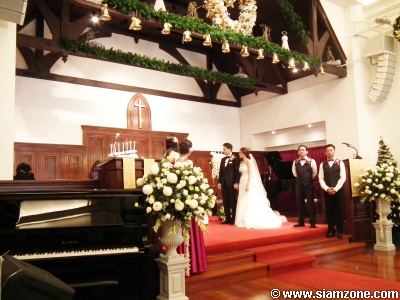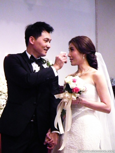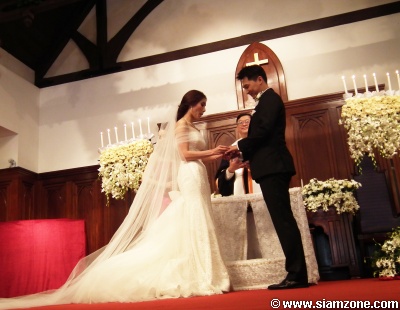 โดยพิธีการช่วงเช้าเป็นพิธีสมรสศักดิ์สิทธิ์ ณ คริสตจักรสืบสัมพันธวงศ์ ซึ่งมีการกล่าวสาบานตนเพื่อรับกันและกันเป็นสามีภรรยา ต่อหน้าผู้ประกอบพิธี "ศาสตราจารย์ธงชัย ประดับชนานุรัตน์" หลังจากนั้นก็ได้การมอบคำมั่นสัญญา ฝ่ายเจ้าบ่าวเอ่ยว่า "ต่อหน้าพระเจ้า ต่อหน้าผู้ประกอบพิธีและผู้ปกครอง รวมทั้งแขกผู้มีเกียรติทุกคน พี่ขอสัญญาว่าพี่จะดูแลเปิ้ลด้วยด้วยเกียรติของพระเจ้า ด้วยหนทางที่พระเจ้าเตรียมเอาไว้สำหรับเราสองคน เชื่อว่าไม่ว่าจะทุกข์หรือสุข จะมีหรือไม่มี ไม่ว่าจะเหนื่อย ไม่ว่าจะมีความสุขสนุกสนานแค่ไหน ทุกบทบาทในชีวิตของพี่จะมีเปิ้ลอยู่ด้วยเสมอ จะดูแลเปิ้ลและก็จะรักเปิ้ลมากขึ้นทุกวัน ตราบเท่าที่ผู้ชายคนนี้จะทำได้" ส่วนฝ่ายเจ้าสาวก็ได้ขอบคุณและให้คำมั่นสัญญาว่า "ขอบคุณพี่แอนมากนะคะ ที่ทำให้วันนี้เกิดขึ้น แล้วก็จะพยายามเชื่อฟัง ไม่เอาแต่ใจตัวเอง และจะพยายามเป็นแม่ศรีเรือน ดูแลพี่ต้นให้ดีที่สุด" นอกจากนี้ยังมีบทเพลงพิเศษจาก 3 นักร้องเสียงคุณภาพ แอน ร่วมด้วย "โบ - สุรัตนาวี สุวิพร" "ปุ๊ - อัญชลี จงคดีกิจ" ที่ตั้งใจมอบเพลง "เพราะพระองค์รัก" ให้กับคู่บ่าวสาวที่ทำให้บรรยากาศหวานฉ่ำขึ้นอีก