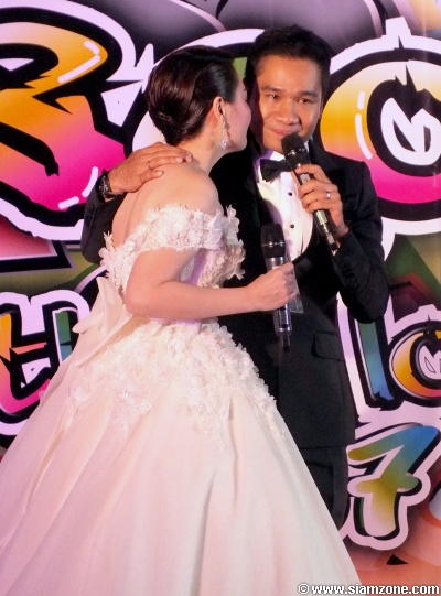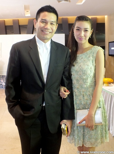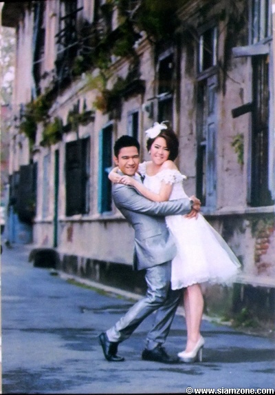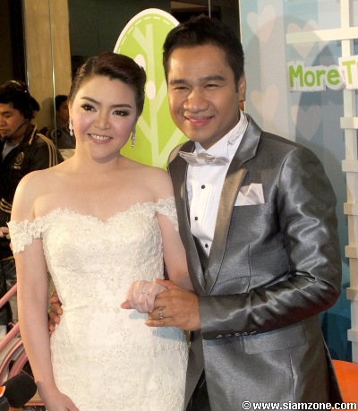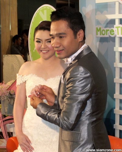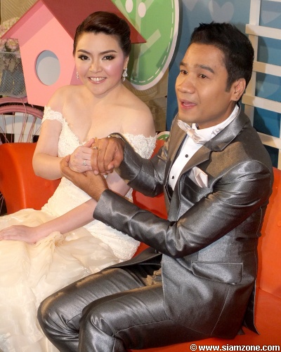 กอล์ฟ "จดทะเบียนน่าจะเป็นสัปดาห์หน้าครับ คือจริงๆ แล้วคุยกับหลวงพ่ออยู่เหมือนกัน คือถ้าเกิดว่าสัปดาห์หน้าไม่ค่อยเหมาะอาจจะเลื่อนไปอีก สมมติถ้าเกิดว่าฤกษ์บังคับนะ แต่ถ้าเกิดฤกษ์ไม่ได้บังคับก็สัปดาห์หน้าจดทะเบียนฮะ เพราะว่าวันนี้วันอาทิตย์ไม่รู้จดยังไง ทำไม่เป็น (หัวเราะ) ต้องไปติดต่ออำเภอค่อนข้างรายละเอียดเยอะ"
