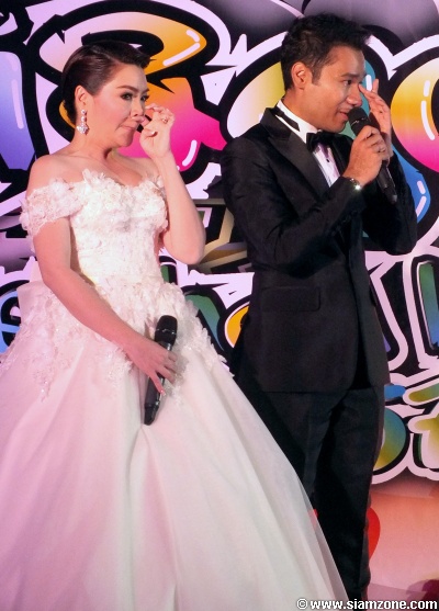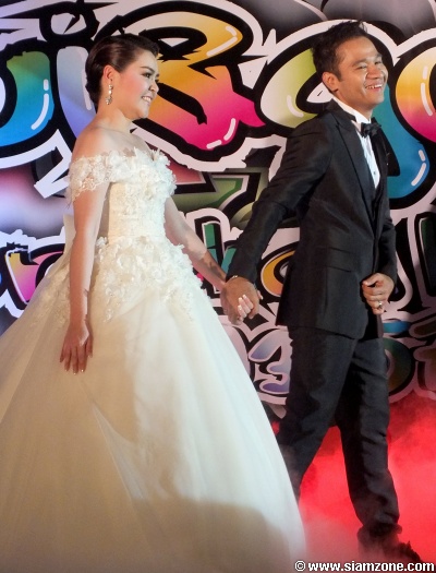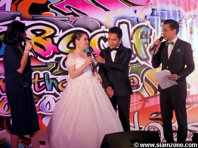 กอล์ฟ "ก็คอนเสิร์ตเปิดตัวเมีย ก็อย่างที่บอกล่ะครับว่าวันนี้งานแต่งในเรื่องของพิธีก็ยังมีอยู่ ในพิธีที่ควรจะทำนะครับ แต่ว่าบรรยากาศโดยรวมจะเป็นคอนเสิร์ตเปิดตัวเมีย รวมๆ ก็จะเหมือนงานอีเวนต์หน่อย (หัวเราะ) นะครับ สนุกสนานกันไป แต่ว่ามันไม่ได้เป็นคอนเสิร์ตที่มีเวลาเตรียมตัวเยอะแยะมากมาย เพราะฉะนั้นเนี่ยก็อาจจะมีขลุกขลักอะไรบ้าง เดี๋ยวว่ากันหน้างานละกัน (หัวเราะ)"