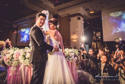 ใช้ชีวิตคู่ร่วมกันมาได้ 2 เดือนกว่า คู่รักใหม่ป้ายแดงก็ขอแสดงความหวานให้ทุกคนได้อิจฉากันอีกครั้งในพิธีฉลองมงคลสมรส เมื่อวันที่ 11 พฤษภาคม 2557 ณ โรงแรม พลาซ่า แอทธินี รอยัล เมอริเดียน ซึ่งเจ้าบ่าวและเจ้าสาวได้จูงมือกันมาพูดถึงช่วงเวลาแห่งความประทับใจนี้