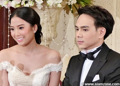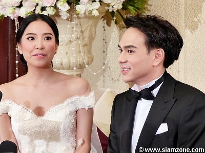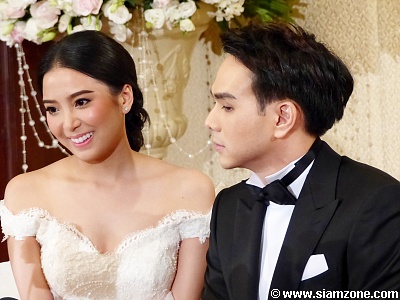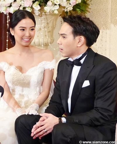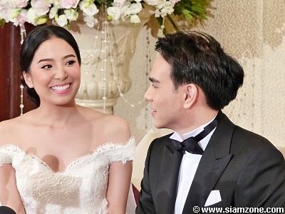 โบว์ "ค่ะ ก็เช่นกันค่ะพี่เกรท จริงๆ โบว์ว่าระยะเวลาที่คบกันมา ก็ส่วนใหญ่พี่เกรทจะเป็นฝ่ายเทกแคร์ดูแลโบว์เนอะ ก็แต่งงานกันแล้วโบว์ก็อยากจะสัญญาว่าก็จะพยายามดูแลพี่เกรทให้ดีที่สุด ที่ผู้หญิงคนหนึ่งจะทำได้ค่ะ แล้วก็เราก็จะเคียงคู่กันไป ไม่ว่าจะทุกข์หรือสุข หรืออะไรก็ตามค่ะ น้องก็จะอยู่เคียงข้างพี่เกรทค่ะ (ยิ้ม)"