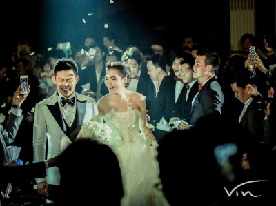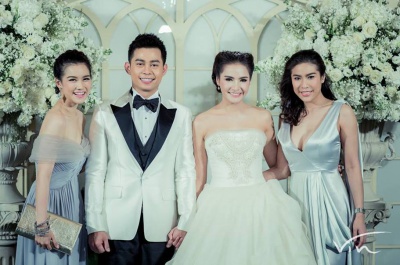 สำหรับงานเลี้ยงฉลองมงคลสมรสก็มีเหล่าคนวงการบันเทิงตบเท้ามาร่วมงานอย่างอบอุ่น อาทิ "ลีเดีย - ศรัณย์รัชต์ วิสุทธิธาดา" ที่มาพร้อมกับหนุ่ม "แมทธิว ดีน" "เนย - โชติกา วงศ์วิลาศ" "เบนซ์ - ปุณยาพร พูลพิพัฒน์" "ตุ้ย - เกียรติกมล ล่าทา" "น้ำตาล - พิจักขณา วงศารัตนศิลป์" "ออย - ธนา สุทธิกมล" และภรรยา ด้านสาว "นิวเคลียร์ - หรรษา จึงวิวัฒนวงศ์" ก็มากับแฟนหนุ่ม "เพชรจ้า - วิเชียร กุศลมโนมัย" "มะหมี่ - นคภปภา นาคประสิทธิ์" "นานา - ไรบีนา ตันวิมล" "เมย์ - พิชญ์นาฏ สาขากร" "นิว - วงศกร ปรมัตถากร" "โบวี่ - อัฐมา ชีวนิชพันธ์" "ครีม - เปรมสินี รัตนโสภา" "ครี - พัสวีพิชญ์ ศรณ์อัครภา" ซึ่งแขกผู้มาร่วมงานจะได้รับของชำร่วย เป็นกรอบสีทองที่ด้านในบรรจุช้างเผือก 2 ตัวหันหน้าชนกันพร้อมหัวใจสีชมพูดวงเล็กสวยงาม