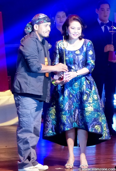 "ซ้ง - ธรธร สิริพันธ์วราภรณ์" ผู้กำกับโทรทัศน์ดีเด่นประจำปี 2557 เผยความรู้สึกว่า "การทำละครเนี่ยนะครับ ละครที่จะทำให้มันแตกต่างจากละครที่เป็นแพตเทิร์นอยู่เนี่ย โดยปกติมันก็ยากอยู่แล้ว แล้วยิ่งเป็นละครพีเรียตที่เราพยายามจะหนีรูปแบบหรือสิ่งที่จำกัดความเป็นละครออกไปเนี่ยมันก็ยากยิ่งกว่า แล้วสิ่งที่ยากยิ่งขึ้นคือทำยังไงให้คนดูยอมรับ ซึ่งสิ่งที่ได้มานี้ต้องขอบคุณคณะกรรมการโทรทัศน์ทองคำนะครับที่มีวิสัยทัศน์ที่ดีมากเลยนะครับที่ให้ผม (หัวเราะ) คือต้องขอบคุณมาก เพราะว่าการที่เราพยายามจะหนีแนวทางละครพีเรียตแบบที่เคยทำมาแล้วมีฟีตแบ็กมีอะไรหลายๆ อย่าง แต่ว่ามีคนที่เห็นคุณค่า แล้วก็ความตั้งใจในการทำงาน เห็นการล้มลุกคลุกคลานในการทำงานของเราแล้วก็ให้รางวัล ซึ่งเป็นสิ่งที่เราประทับใจมาก แล้วก็ต้องขอบคุณพี่ปิ่นของทีวีซีนนะครับ ที่คอยอยู่เคียงข้างเป็นด่านหน้าคอยปะทะทุกอย่างที่ผมผจญมา"