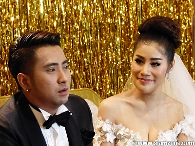 บอล "สินสอดก็คือบ้านหนึ่งหลัง ทองคำ 10 บาท แล้วก็เป็นแหวน แล้วก็เป็นเช็คเงินสดหนึ่งล้านบาทครับ ซึ่งคือทางพ่อไม่ได้เรียกอะไรหรอก ทางป๊าไม่ได้เรียกอะไร เราก็คืออยากให้ดูให้รู้สึกดีๆ ฮะ เราคือตลกคนหนึ่ง เรามาจากวัดจากธรรมดาคนหนึ่ง แต่วันนี้ผมจัดงานให้ลูกป๊า รู้สึกว่าเออมันสมกันนะๆ ถึงแม้ผมจะไม่ได้ยิ่งใหญ่อะไรมากมาย แต่ผมก็อยากให้รู้ว่าผมจัดให้เต็มที่จริงๆ"