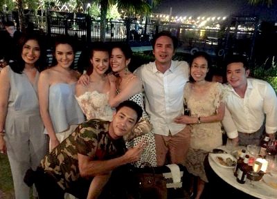 ซึ่งบรรยากาศในงานเลี้ยงฉลองมงคลสมรสก็เป็นไปอย่างอบอุ่นและชื่นมื่น เต็มไปด้วยญาติผู้ใหญ่ เพื่อนสนิทของทั้งเจ้าบ่าว เจ้าสาว ที่มาร่วมแสดงความยินดีกับทั้งคู่ สำหรับผู้ใหญ่ในวงการบันเทิงที่มาร่วมงานในครั้งนี้ นำโดย "ประวิทย์ มาลีนนท์" "สมรักษ์ ณรงค์วิชัย" "ดาว - ดวงดาว จารุจินดา" "หน่อง - พลากร สมสุวรรณ" "ไก่ - วรายุฑ มิลินทจินดา" ด้านเพื่อนพ้องในวงการบันเทิง อาทิ "ธัญญ่า - ธัญญาเรศ เองตระกูล" "กีต้าร์ - ศิริพิชญ์ วิมลโนช" "นก - ศิขรินธาร พลายเถื่อน" "ปู - นริสา พรหมสุภา" ร่วมด้วยเหล่านักแสดงจากละคร "สุดแค้นแสนรัก" เช่น "ต๊งเหน่ง - รัดเกล้า อามระดิษ" "หญิง - รฐา โพธิ์งาม" "โดนัท - มนัสนันท์ พันธุ์เลิศวงศ์สกุล" "น็อต - วรฤทธิ์ เฟื่องอารมย์" "บอย - พิษณุ นิ่มสกุล" และ "เบนซ์ - พรชิตา ณ สงขลา" ควงคู่มากับ "มิค - บรมวุฒิ หิรัณยัษฐิติ"