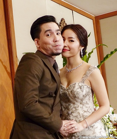 เผือก "วันนี้ก็เป็นวันสำคัญของเราทั้งคู่นะครับ แล้วก็เหนื่อยกันมานานเหมือนกันเนอะ แล้วก็เครียด บางทีเขาก็เครียด พยายามบอกเขาว่าอย่าเครียดๆ แล้วก็วันนี้ก็ครึ่งทางแล้ว เดี๋ยวงานแต่งเราก็จะผ่านไป แล้วก็นับจากวันพรุ่งนี้ เราก็จะเป็นครอบครัวเดียวกัน ก็มาสร้างครอบครัวที่ดีด้วยกันครับ"