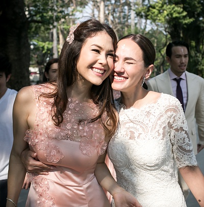 เจน "มาๆ ก็ทั้งแก๊งก็เป็นเพื่อนเจ้าสาวหมด แล้วก็มีเพื่อนเจนที่ทำงานอยู่ด้วยกันมาตั้งแต่สมัยเรียนก็เป็นเพื่อนเจ้าสาวด้วย คือบินมาจากเมืองนอกอะไรอย่างนี้ก็มาด้วยค่ะ"
