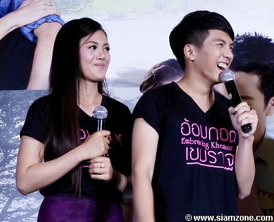 เต๋า ฝากพี่น้องชาวไทยไปร่วมโอบกอดความรักในภาพยนตร์เรื่องนี้ "ฝากพี่น้องนะครับไปร่วมกันโอบกอดความรักนะครับ แล้วก็วัฒนธรรมที่ดีงามนะครับ รวมไปถึงประเพณีการท่องเที่ยวนะครับผม ของจังหวัดอุบลราชธานี โดยเฉพาะอำเภอเขมราฐนะครับผม 12 พฤษภาคมนี้ กับ อ้อมกอดเขมราฐ ครับ" ส่วนคุณหมอ เพื่อน เอ่ยว่า "ก็นอกจากเรื่องของความรัก ในหนังเรื่องนี้อย่างที่เต๋าบอกว่ามันมีวัฒนธรรมหลายๆ อย่าง รวมถึงในวัยแต่ละยุคเนี่ยค่ะ คือหมายถึงว่าแต่ละรุ่น ก็คือเริ่มตั้งแต่เด็กๆ กลางๆ อายุเยอะๆ กลางคนค่ะ คือมันมีทุกอย่างนอกจากความรัก มันเหมือนกับชีวิตประจำวันของเราที่บางทีเนี่ยเราไม่ได้สนใจที่จะดูแลหรือว่าใส่ใจอะไรกับมัน แล้วหนังเรื่องนี้เนี่ยหยิบยกประเด็นตรงนั้นขึ้นมา แต่ว่ามันหยิบมาด้วยความอบอุ่น ก็อยากฝากอ้อมกอดที่น่ารักแล้วก็อบอุ่น อ้อมกอดเขมราฐ ไว้ด้วยค่ะ"