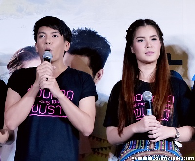 ส่วนหนุ่ม เต๋า แนะนำตัวละครที่ได้รับว่า "รับบทเป็น เป้ง ครับ คาแรกเตอร์ของเป้งนะครับก็คือจะเป็นหนุ่มอำเภอเขมราฐเลยนะครับ แล้วก็ในเรื่องเราสองคน (เต๋า และ น้อง) ต้องพูดภาษาอีสานนะครับ คาแรกเตอร์ก็จะเป็นคนที่มุ่งมั่น ขยันทำการทำงานนะครับผม เป็นลูกน้องของพระเอก ก็คือจะคอยส่งผักไปร้านก๋วยเตี๋ยว ซึ่งเขาก็เป็นคนทำงานที่ร้านก๋วยเตี๋ยวครับ" ฟากสาว น้อง เพื่อนบ้านริมฝั่งโขงทักทายเป็นภาษาบ้านเกิด พร้อมกล่าวความรู้สึกว่า "สะบายดี ชื่อน้อง พุดทะสอน รับบทเป็น พิมมะณี" ซึ่งบทบาทของ น้อง จะเป็นอย่างไรนั้นหนุ่ม เต๋า รับหน้าที่อธิบายให้ฟังว่า "พิมมะณีก็จะเป็นหญิงสาวชาวลาวนะครับผม มาช่วยป้าที่ร้านขายก๋วยเตี๋ยว ข้ามมาอยู่ที่ฝั่งไทยก็คือเขมราฐนะครับผม ก็คือหาเงินเพื่อที่จะจุนเจือหล่อเลี้ยงครอบครัวที่ฝั่งลาว"