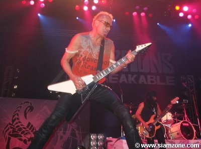 และก็ไม่เคยทำให้แฟนๆ ผิดหวังการแสดงสดบนเวทีของวง Scorpions มีลูกเล่นหลายอย่างสร้างความประทับใจให้กับคนดูจริงๆ เปิดตัวเพลงแรก "New Generation" และ "Love 'Em or Leave 'Em" ซึ่งเป็นเพลงในอัลบั้มใหม่ Unbreakable ตามต่อด้วยเพลง "Bad Boys" "The Zoo" "We'll Burn The Sky" "Deep And Dark" และ "Coast To Coast" ก่อนหยิบเพลงเพราะอย่าง "Holiday" "You And I" มาร้อง ต่อด้วย "Through My Eyes" และ "Tease Me Please Me"