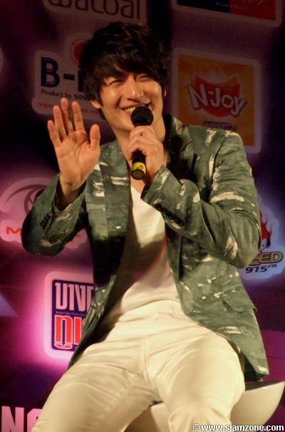 ด้านหนุ่ม "คิมแทอู" (Kim Tae Woo) เผยว่า "เคยมาส่วนตัวมาเที่ยวที่ประเทศไทย มีหลายคนที่รู้จักผมแล้วก็เรียกชื่อผม รู้สึกตกใจมากเลย ต้องขอบคุณแฟนๆ รู้สึกชอบเมืองไทยมากเลยครับ" เมื่อถามถึงภารกิจที่ต้องไปรับใช้ชาติมาว่าเป็นยังไงบ้าง ก็ได้รับคำตอบกลับมาว่า "การรับใช้ชาติ การไปเกณฑ์ทหารไม่ใช่เรื่องที่สะดวกสบายอยู่แล้ว แต่ว่าพอผ่านพ้นมาแล้ว ก็รู้สึกว่าเป็นประสบการณ์ที่ดี เป็นกำลังใจในการดำเนินชีวิตต่อไป" ส่วนความรู้สึกที่มีต่อประเทศไทยนั้น แทอู บอกว่า "ร้อนมากครับ แต่ว่าสิ่งที่ประทับใจก็คือความใจดีของคนไทย ปกติเวลาที่เดินทางไปต่างประเทศก็จะรู้สึกแปลกถิ่นต่างถิ่น แต่สำหรับคนไทยแล้วรู้สึกไม่แปลกเลย เหมือนกับคนประเทศเดียวกันครับ"