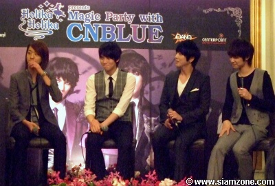 4 หนุ่มร็อก "ซีเอ็นบลู" (CNBLUE) ที่ประกอบด้วย "จองยงฮวา" (Jung Yong Hwa) "อีจงฮยอน" (Lee Jong Hyun) "อีจองชิน" (Lee Jung Shin) และ "คังมินฮยอก" (Kang Min Hyuk) กลับมาเยือนเมืองไทยอีกครั้ง คราวนี้นอกจากจะมาเป็นพรีเซ็นเตอร์ให้กับเครื่องสำอาง โฮลิก้า โฮลิก้า แล้ว ยังมีภารกิจพิเศษอาสามาเสกความสุขความสนุกให้กับแฟนๆ ชาวไทยในงาน "โฮลิก้า โฮลิก้า พรีเซนต์ แมจิก ปาร์ตี้ วิธ ซีเอ็นบลู" (Holika Holika Presents Magic Party With CNBLUE) ณ ธันเดอร์โดม เมืองทองธานี ในช่วงเย็นของวันที่ 27 มกราคม ที่ผ่านมา โดยก่อนจะถึงเวลานั้น ทั้ง 4 หนุ่ม ได้มาให้สัมภาษณ์กับสื่อมวลชนในช่วงเช้า ณ ดุสิตธานีฮอลล์ โรงแรมดุสิตธานี