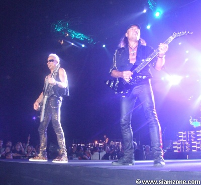 หลังจากที่เหล่าสมาชิกทั้ง 5 คน ได้แก่ นักร้องนำ "เคลาส์ ไมน์" (Klaus Meine) มือกีตาร์ "แมตเทียส แจ๊บส์" (Matthias Jabs) กับ "รูดอล์ฟ เชงเกอร์" (Rudolf Schenker) มือเบส "พาเวล มาซิโวดา" (Pawel Maciwoda) และมือกลอง "เจมส์ คอตแท็ก" (James Kottak) ปรากฏตัวขึ้นบนเวทีก็ได้รับเสียงกรี๊ดดังไปทั่วอิมแพ็ค ซึ่งสมาชิกทั้ง 5 คนได้เริ่มต้นทักทายแฟนๆ ด้วยการแสดงดนตรีจากมือกลอง มือกีตาร์ และมือเบส หลังจากนั้นก็เริ่มต้นความสนุกด้วยเพลง "Sting In The Tail" ตามมาติดๆ กับ "Make It Real" และ "Bad Boys"