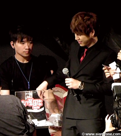 "สวัสดีครับ ผมชื่อคยูฮยอนครับ (ภาษาไทย) ต้องขอขอบคุณทุกๆ คนที่มาในงานวันนี้ด้วยนะครับ แล้วก็ขอฝากความรักให้กับทุกๆ คนด้วยครับ"