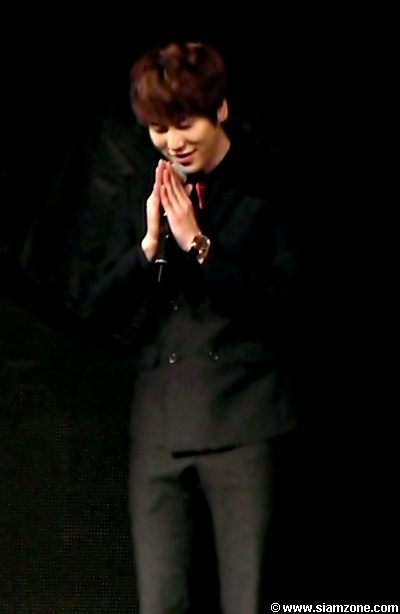 "ไม่ได้เจอกันตั้งนาน คิดถึงมากนะครับ ครั้งนี้เป็นครั้งแรกผมมาคนเดียว แต่ว่ามีแฟนคลับมากันเยอะขนาดนี้ เป็นกำลังใจให้ผมมากๆ อย่าลืมรักผม มาชิตะ แล้วก็ซูเปอร์จูเนียร์ด้วยนะครับ"