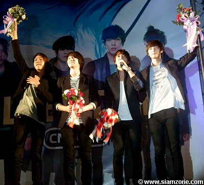 จองชิน "ผมก็รู้สึกประทับใจแฟนเพลงชาวไทยเหมือนกันครับ เพราะว่าทุกครั้งที่พวกเรามาเมืองไทย แฟนๆ ก็ให้การต้อนรับที่ดีเสมอเลยครับ ต้องขอบคุณทุกๆ คนมากๆ ครับ"