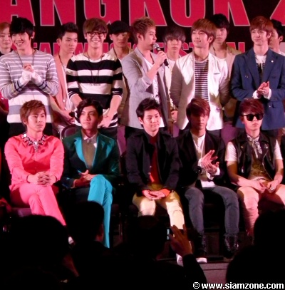 ชองยุนโฮ (Jung Yun Ho) จาก ทงบังชินกี "ปีที่แล้วพวกเราก็มีโอกาสได้ขึ้นแสดงบนเวทีนี้มาแล้ว ก็รู้สึกดีใจมากที่ได้กลับมาขึ้นแสดงบนเวทีนี้อีกครั้งนึงครับ พวกเราก็หวังว่าจะได้มาเมืองไทยบ่อยๆ นะครับ สำหรับการแสดงคอนเสิร์ตพวกเราก็ได้เตรียมการแสดงพิเศษมาให้แฟนๆ ได้ชมกันด้วย ก็อยากให้ทุกคนที่ไปชมคอนเสิร์ตแล้วเก็บความประทับใจจากศิลปินหลายๆ กลุ่มเอาไว้ด้วย แล้วจะได้ไปชมคอนเสิร์ตของศิลปินเกาหลีอยู่เรื่อยๆ นะครับ"