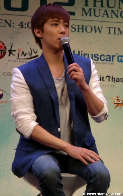 จงฮุน "พวกเราไม่ได้มาเยี่ยมเมืองไทยนานแล้ว พวกเราก็จะเล่นคอนเสิร์ตครั้งนี้ให้สนุกที่สุด มีพลังมากที่สุด ก็อยากให้แฟนๆ ไปคอนเสิร์ตในวันพรุ่งนี้กันเยอะๆ ไม่อยากให้ความทรงจำในคอนเสิร์ตหายไปในระยะเวลาสั้น อยากจะให้ทุกคนมีความทรงจำที่ดีนะครับ ยังไงพวกเราก็จะพยายามมาเมืองไทยให้บ่อยๆ นะครับ"
