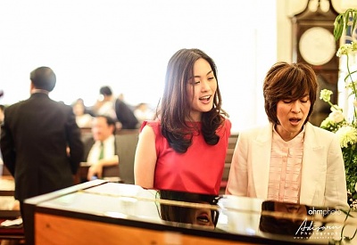 เอ๊ะ "ตื่นเต้นนิดหน่อยตอนก่อนจะเริ่มงานที่โบสถ์นะคะ แต่ว่าเป็นความตื่นเต้นที่เป็นความรู้สึกที่ดี ที่รู้สึกว่าครั้งหนึ่งในชีวิตที่เราจะได้ทำอะไรแบบนี้กับคนที่เรารักค่ะ"