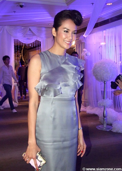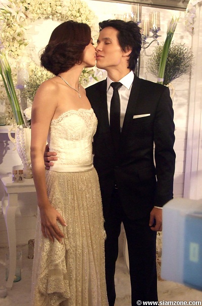 เอ๊ะ "ตอนแรกไม่ได้คิดว่าจะมีพิธีไทยนะคะ แต่ว่าด้วยความที่เจ้าบ่าวอยากจะใส่ชุดไทย แล้วก็อยากมีพิธีแบบไทยๆ ครั้งนึงในชีวิตเขา ก็เลยทำกันแบบง่ายๆ ที่บ้าน ก็สนุกดีค่ะ เป็นอะไรที่ก็เหนื่อยนิดนึงในการอธิบายกับทั้งเขาแล้วก็กับทางครอบครัวเขา แต่ว่าทุกคนก็มีความสุขมาก ก็มีการกั้นแล้วก็ให้เต้น Gangnam Style ก่อนจะเข้ามา (หัวเราะ)"