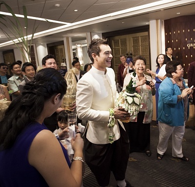 สำหรับงานเลี้ยงในพิธีมงคลสมรสของบ่าวสาว จะมีขึ้นในวันที่ 5 ตุลาคม 2556 ในเวลา 18.00 น. ณ ไปรษณีย์กลาง บางรัก