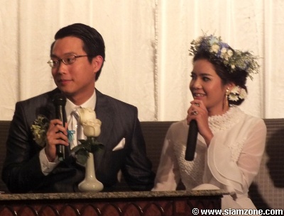 เอิ้น "ก็คิดว่าจะมีเลยค่ะ ถ้าเกิดเขามาเนอะ (หันหน้าไปหาเจ้าบ่าว) เพราะว่าตอนนี้ก็อายุอานามไม่น้อยละค่ะ เดี๋ยวต้องเจาะน้ำคร่ำแล้ว (หัวเราะ) ก็เลยคิดว่ามีเลยดีกว่าค่ะ"