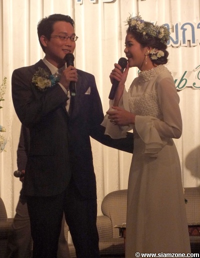 ในช่วงพิธีการตอนเย็นนั้นมีญาติผู้ใหญ่จากทางฝั่งของเจ้าบ่าวและเจ้าสาวมาร่วมงานกันมากมาย นอกจากนี้ยังคนบันเทิง อาทิ "แอน - ธิติมา ประทุมทิพย์" "เอส - วรฤทธิ์ ไวยเจียรนัย" "อ้อย - นภาพร ไตรวิทย์วารีกุล" อีกทั้งยังได้รับเกียรติจาก "ฉอด - สายทิพย์ มนตรีกุล ณ อยุธยา" ขึ้นมาเป็นประธานในพิธีกล่าวอวยพร พร้อมกับสวมมงกุฎดอกไม้ ติดเข็มกลัดดอกไม้ให้กับเจ้าบ่าวและเจ้าสาว งานนี้ ฉอด ยังมอบเพลง "สิ่งสำคัญ" ที่ขับร้องโดย 3 หนุ่ม "ขลุ่ย - วชิระ พุกพบสุข" "เต - เตชินท์ ชยุติ" และหนุ่ม "เป้ - บดินทร์ เจริญราษฎร์" ให้เป็นของขวัญสำหรับทั้งคู่อีกด้วย