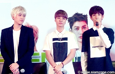 ดงฮยอน "พรุ่งนี้ (9 ส.ค.) เราจะมีงาน 7 สีคอนเสิร์ตที่เดอะไนน์ ผมได้เตรียมเพลงอัลบั้มใหม่ล่าสุดที่ออกมาชื่อว่า Obsession ที่อยากจะมาร้องเพลงให้แฟนๆ ได้ฟัง และนอกจากนี้พวกเรายังได้มาเต้น มาร่วมงานกับใบเตยที่ 7 สีคอนเสิร์ตด้วย ส่วนตอนเย็นเราก็จะได้ไปที่ Young Model เพื่อที่จะไปให้กำลังใจกับน้องๆ ที่ประกวดด้วยครับ"