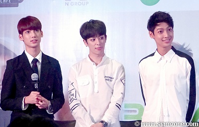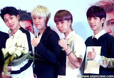 ดงฮยอน "ก่อนอื่นต้องบอกว่าตกใจมากครับ ที่พอมาถึงเมืองไทยก็มีแฟนๆ มารอกันที่สนามบินด้วย ตอนแรกไม่คิดเลยว่าจะมากันเยอะขนาดนี้นะครับ ต้องขอบคุณทางผู้ใหญ่ของ เอ็ม บี เค ที่เชิญชวนพวกผมมาที่ประเทศไทยในครั้งนี้ด้วยครับ"