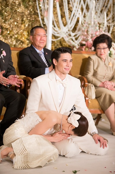 แมทธิว "ก็ทั่วไปอย่างที่เห็นในพานขันหมาก ก็จะเป็นพวกจิวเวลรี ทอง เงินสด แคชเชียร์เช็ค ก็เป็นระดับที่ผมว่าก็พอดีๆ ฮะ สำหรับเรื่องแบบนี้ก็เป็นประเพณีไทยที่เราก็อยากจะทำตาม แล้วเราก็ยินดีอย่างแน่นอนฮะ ผมว่าตัวเลขมันไม่ใช่เรื่องใหญ่หรอกฮะ เลขสำหรับผมอาจจะเยอะ แต่คนอื่นดูอาจจะน้อยก็ได้ หรืออาจจะกลับกันไปเราก็ไม่รู้ แต่ที่บอกไปคือไม่ว่าจะเท่าไรก็มาจากแรงของผมกับการทำงาน ผมก็เต็มที่ 2-3 ปีที่ผ่านมาก็คือรับงานหนักเพื่องานแต่งเราจริงๆ ฮะ เราก็ใส่เต็มที่"