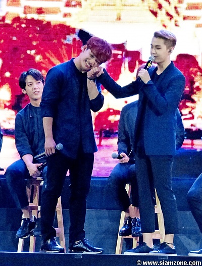 ฟากหนุ่ม อิลฮุน กล่าวว่า "ผมรู้สึกขอบคุณ แล้วก็มีความสุขมากที่เราได้มีโอกาสเจอกันแบบนี้อีกครั้งนะครับ ถ้าเราอยู่ห่างกันนานๆ บางทีอาจจะลืมกันได้ บางทีอาจจะไม่รักกันแล้วก็ได้ แต่ว่าขอบคุณมากๆ ที่ทุกคนไม่ลืมพวกเรา แล้วก็รักพวกเรามากๆ ครับ หลังจากนี้ไปผมก็อยากฝากเนื้อฝากตัวกับทุกคนนะครับ รักนะครับ ขอบคุณครับ" ส่วน ฮยอนชิก พูดถึงความกังวลใจว่า "ผมบอกเลยนะเพราะว่าพวกเราไม่ได้มาเยี่ยมประเทศไทยมานานมาก ผมก็ค่อนข้างเป็นห่วงว่าจะมีแฟนคลับมาหาพวกเราหรือเปล่า แต่ว่าเมโลดีนี่เยี่ยมจริงๆ เลยครับวันนี้ทุกคนมาหาพวกผมเยอะมาก ผมซาบซึ้งมากๆ ขอบคุณมากๆ นะครับ ผมสัญญาว่าพวกเราจะขยันตั้งใจทำงานให้มากขึ้นนะครับ ขอบคุณทุกคนจากใจจริงๆ นะครับ แล้วก็รักทุกคนมากๆ ครับ" เข้าสู่โค้งสุดท้ายหนุ่มชวนทุกคนลุกขึ้นเต้นด้วยกันในเพลง "Thriller" และ "Insane" ยังไม่หมดเพียงเท่านี้เมื่อหนุ่มๆ บีทูบี กลับขึ้นเวทีอีกครั้ง ทิ้งทวนไปกับเพลง "Shake It" เรียกว่าปิดท้ายแบบจัดเต็มความสนุกเพื่อแฟนๆ ชาวไทยเลยจริงๆ