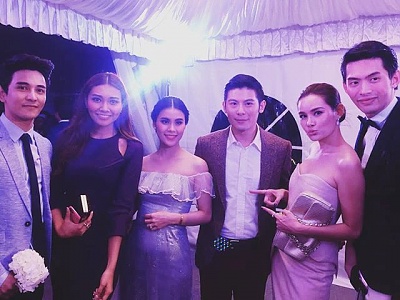 ฟากศิลปินที่มาแสดงความยินดี เช่น "แก้ม - วิชญาณี เปียกลิ่น" "กัน - นภัทร อินทร์ใจเอื้อ" "โตโน่ - ภาคิน คำวิลัยศักดิ์" "กิ๊บซี่ - วนิดา เติมธนาภรณ์" "ขนมจีน - กุลมาศ ลิมปวุฒิวรานนท์" "เฟย์ - พรปวีณ์ นีระสิงห์" "ฟาง - ธนันต์ธรญ์ นีระสิงห์" "แทน - ธารณ ลิปตพัลลภ" "พราว - อรณิชา กรินชัย" สมาชิกวง "โอลีฟส์" "คิว - สุวีระ บุญรอด" นักร้องนำวง "ฟลัวร์" และ "เนม - ปราการ ไรวา" วง "เก็ทสึโนว่า" บรรยากาศโดยรอบบริเวณสวนสวย ถูกประดับด้วยดอกไม้สีขาว และรูปภาพของเจ้าบ่าวเจ้าสาวอย่างสวยงาม ซึ่งแขกที่มาร่วมงานในครั้งนี้จะได้รับของชำร่วยเป็นพัดลายการ์ตูน ช่วยคลายร้อนในสวนได้เป็นอย่างดี