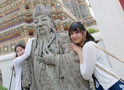 ไม่เพียงแค่นั้น เชฟเอียน ยังจัดแจงสอนทำขนมหวานอย่างจัสมินพานาคอตตา หรือ ขนมดอกมะลิ ในภาษาไทย ที่ทำเอาทั้ง 5 สาวตื่นเต้นกับวิธีการทำ และการตกแต่งหน้าจาน ก่อนตบท้ายด้วยการชิมที่เรียกได้ว่าเป็นปลื้มกันสุดๆ หลังเสร็จจากภารกิจเรียนทำอาหารไทยแล้ว สาวๆ ก็ใช้เวลาที่เหลือเดินเลือกซื้อสินค้าโอท็อปของไทยเพื่อนำไปฝากเพื่อนๆ ที่ญี่ปุ่นอีกด้วย นอกจากนี้สาวๆ ยังได้เดินทางไปวัดโพธิ์ หรือ วัดพระเชตุพนวิมลมังคลารามราชวรมหาวิหาร ในบรรยากาศเย็นสบาย โดยร่วมไหว้สักการะพระนอน ภายในวิหารพระพุทธไสยาส และเดินชมความสวยงามภายในบริเวณวัดโพธิ์ ทั้งพระมหาเจดีย์สี่รัชกาล และชมรูปปั้นฤาษีดัดตน ซึ่งเป็นรูปปั้นฤาษีในท่าทางต่างๆ ทั้งยังทดลองทำท่าทางตามรูปปั้นอีกด้วย