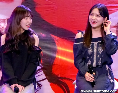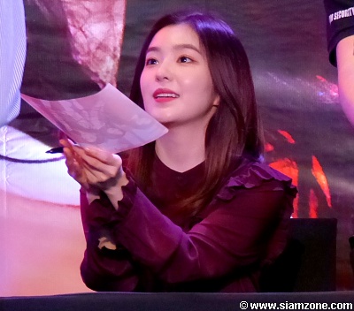 ไอรีน "รู้สึกดีมากเลยนะคะ เพราะว่าได้มีโอกาสมาถ่ายเรียลลิตีโชว์ในประเทศไทย แล้วก็ขอถือโอกาสอยากจะมีแฟนไซนิงอีเวนต์กับแฟนคลับชาวไทยค่ะ ก็เลยได้มีโอกาสนี้ขึ้นมา"